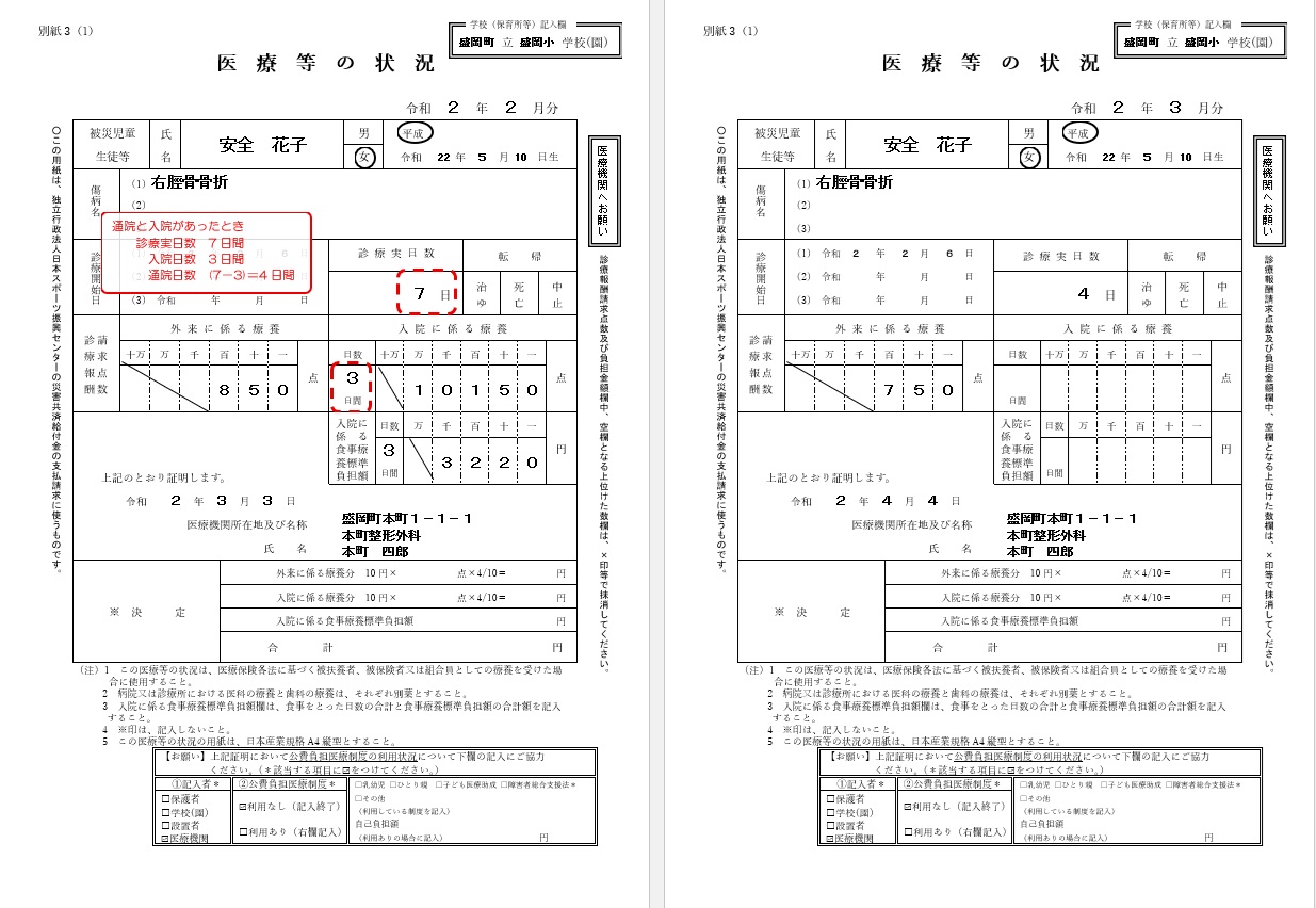 ※スポーツ振興センターで2つの災害が継続していると認められている場合は、合計して「9日」でご請求ください。